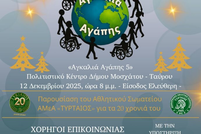 «Αγκαλιά Αγάπης 5», Πολιτιστικό Κέντρο Δήμου Μοσχάτου – Ταύρου, 12 Δεκεμβρίου 2025, ώρα 8 μ.μ.