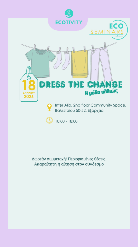 Η ECOTIVITY συνεχίζει τον κύκλο δωρεάν βιωματικών σεμιναρίων Eco-Seminars και το 2026, με ένα σεμινάριο για την βιώσιμη μόδα και σας προσκαλεί να δηλώσετε συμμετοχή.