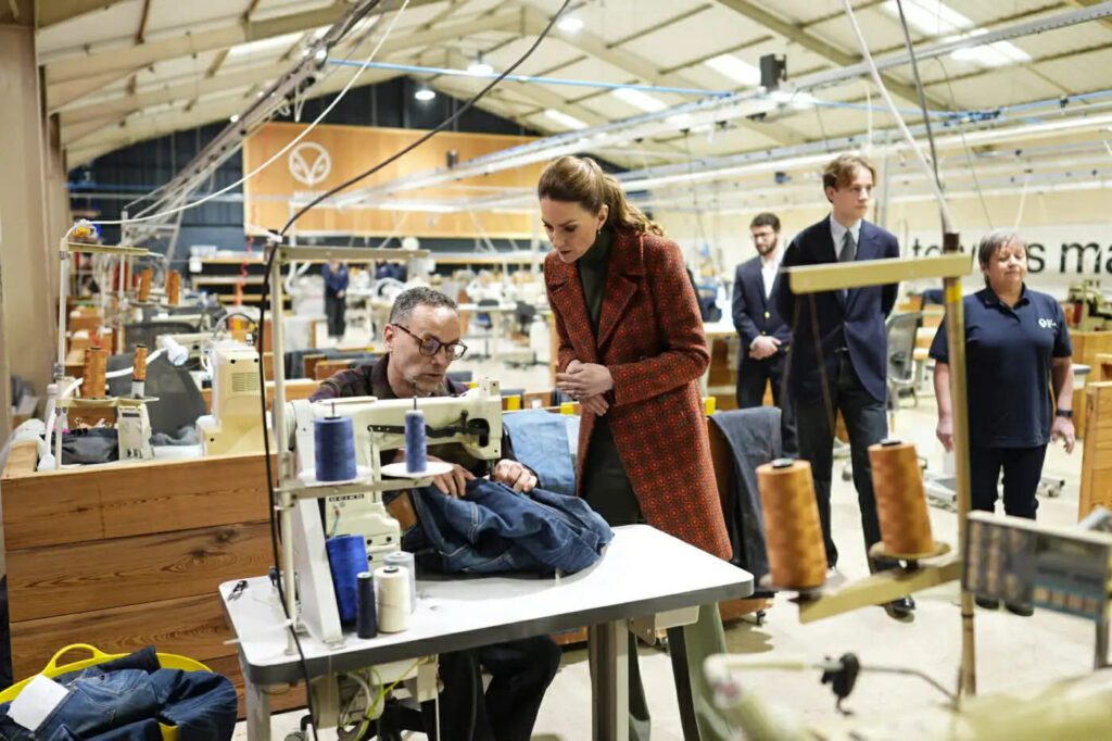 Εκεί, η Kate Middleton πήρε θέση μπροστά σε μια ραπτομηχανή και έραψε η ίδια την ετικέτα σε ένα τζιν που προορίζεται ως δώρο για τον Πρίγκιπα William, σχολιάζοντας με χαμόγελο ότι είναι βέβαιη πως θα το αγαπήσει. Η εικόνα της Πριγκίπισσας να συμμετέχει ενεργά στη διαδικασία παραγωγής δεν άργησε να τραβήξει τα βλέμματα, κερδίζοντας τον θαυμασμό του κοινού και κάνοντας τον γύρο του διαδικτύου.