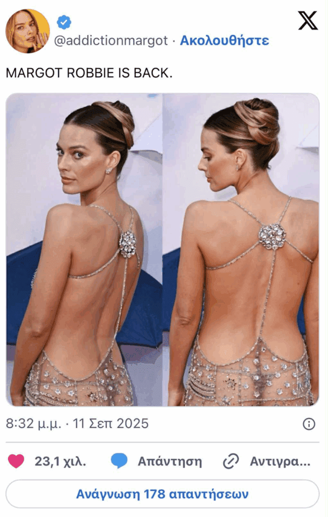 Η Μάργκοτ Ρόμπι μαγνήτισε τα βλέμματα στο Λονδίνο, όπου παρευρέθηκε στην προβολή της ταινίας «A Big Bold Beautiful Journey» με μια εντυπωσιακή εμφάνιση που δεν άφησε κανέναν ασυγκίνητο.