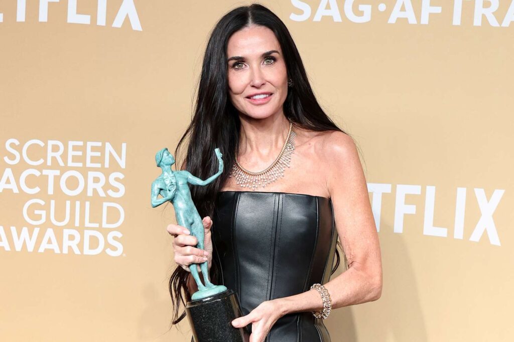 Demi Moore, couture drama με κινηματογραφική ένταση. Αν η βραδιά είχε μια στιγμή καθαρής θεατρικότητας, αυτή ανήκε στη Demi Moore. Η εμφάνισή της με δημιουργία Schiaparelli couture έφερε στο κόκκινο χαλί το είδος του fashion drama που θυμίζει γιατί η υψηλή ραπτική είναι τέχνη. Όγκος, γλυπτική φόρμα και μια αίσθηση μεγαλείου που έκανε την παρουσία της να μοιάζει σχεδόν σκηνοθετημένη. Κάποιες εμφανίσεις απλώς φοριούνται, άλλες  δημιουργούν σκηνή.