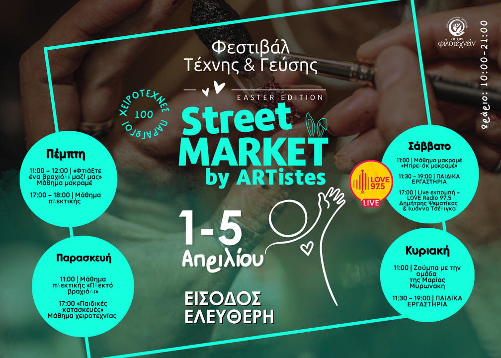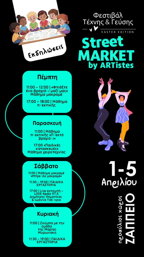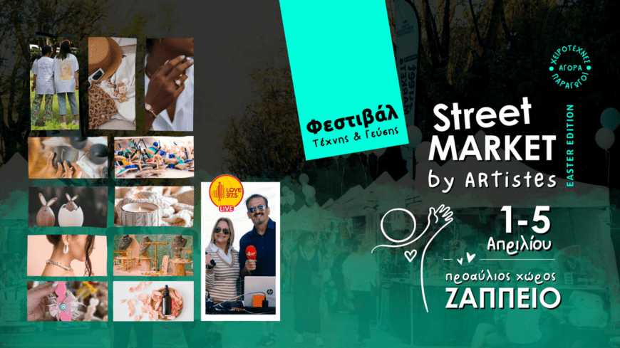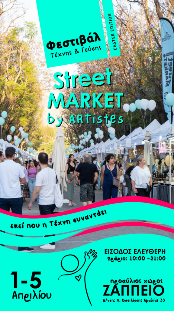Το Street Market by Artists επιστρέφει δυναμικά στο Ζάππειο και προσκαλεί το κοινό σε μια ξεχωριστή γιορτή τέχνης και γεύσης, από την Τετάρτη 1 έως και την Κυριακή 5 Απριλίου 2026, στον προαύλιο χώρο του Ζαππείου, στη Λεωφόρο Βασιλίσσης Αμαλίας 33.